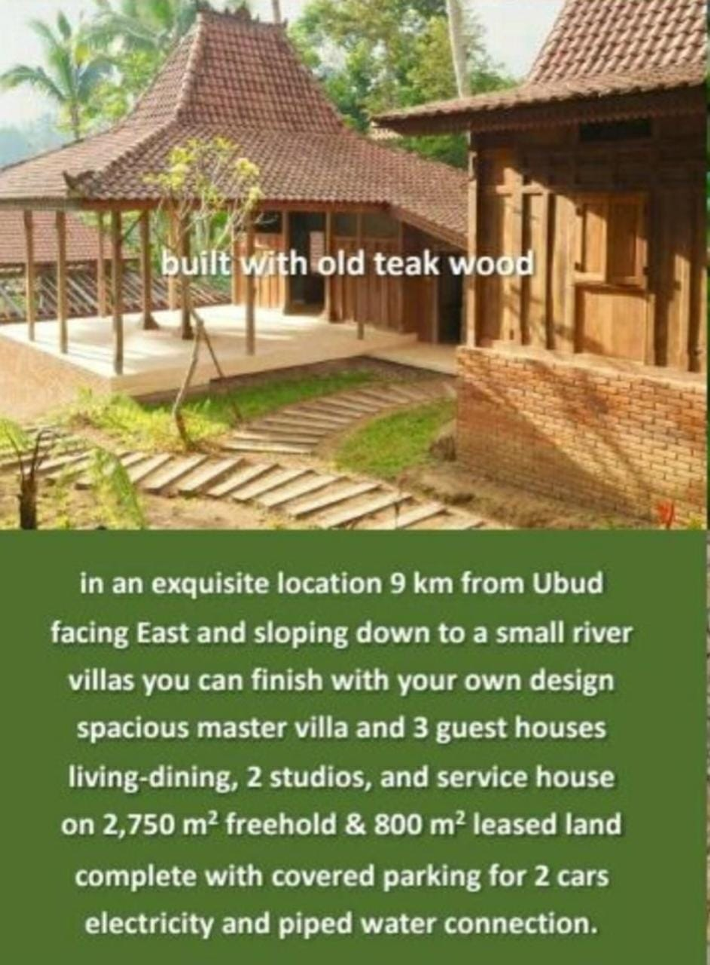 This exceptional investment opportunity in the tranquil area of Kedisan, Gianyar, centers on a sprawling 2,750 sqm (27 are) Freehold estate, strategically expanded by an additional 800 sqm of Leasehold land that serves as a permanent natural buffer until 2047. The primary value of this listing lies in its rare and expansive land size, featuring dramatic east-facing jungle views and direct river access, all secured by a private 3-meter driveway.