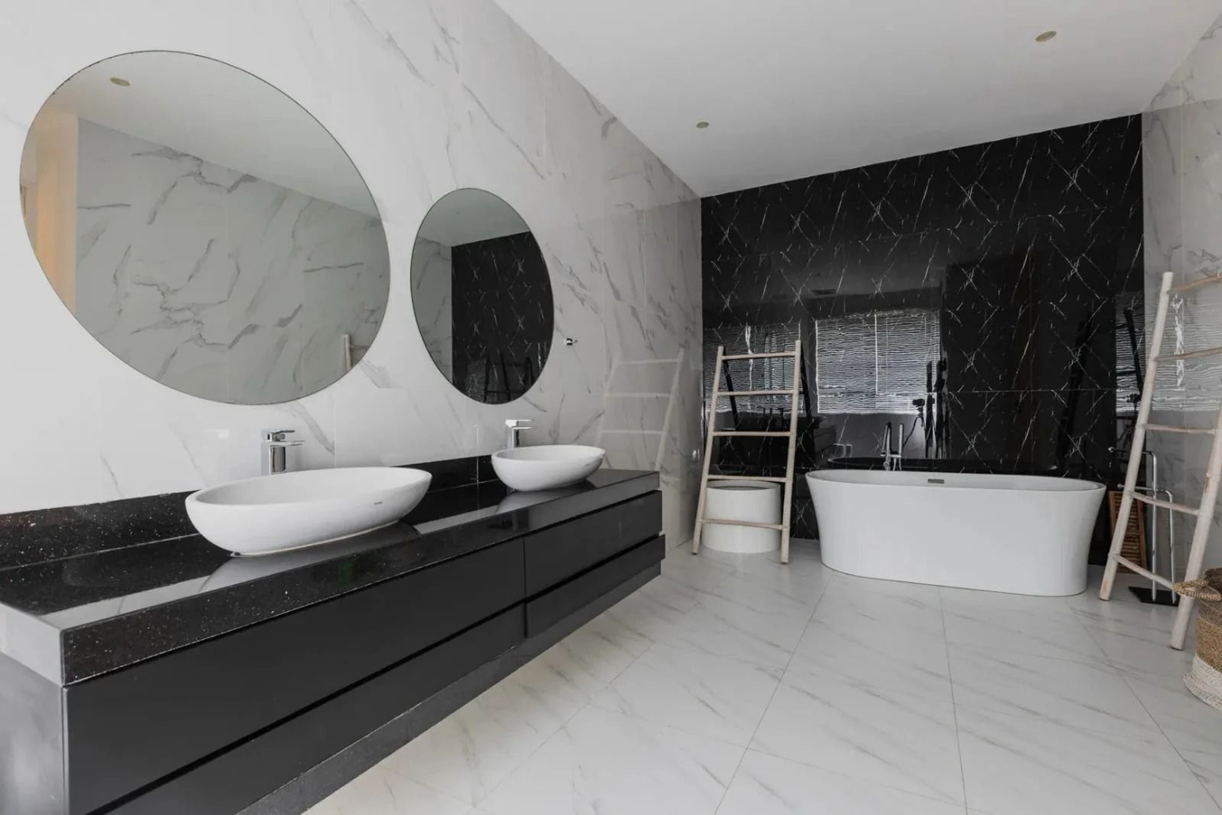 This modern villa offers a seamless blend of sophisticated design and breathtaking views. The expansive building provides ample space for comfortable living, with four beautifully appointed bedrooms, each with its own en-suite bathroom. The villa comes fully furnished, ensuring a hassle-free move-in experience.